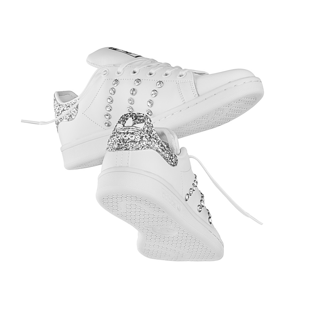 Queste Adidas Stan Smith Grace Kelly sono personalizzate con brillante, glitter argento e logo bianco sul tacco!
